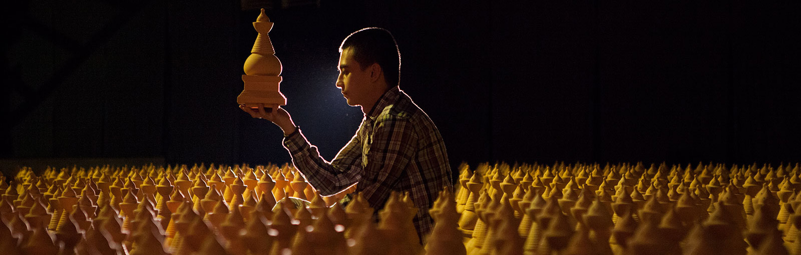 His work for “Sakti’’, Cosmic Labyrinth: The Silent Path, is made of 1,200 ceramic objects in the form of stupas. The work is also meant as a spiritual meditation in order to find enlightenment through transformative energy, the power of Sakti.