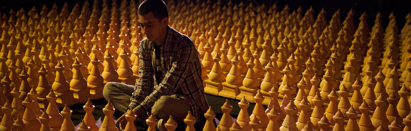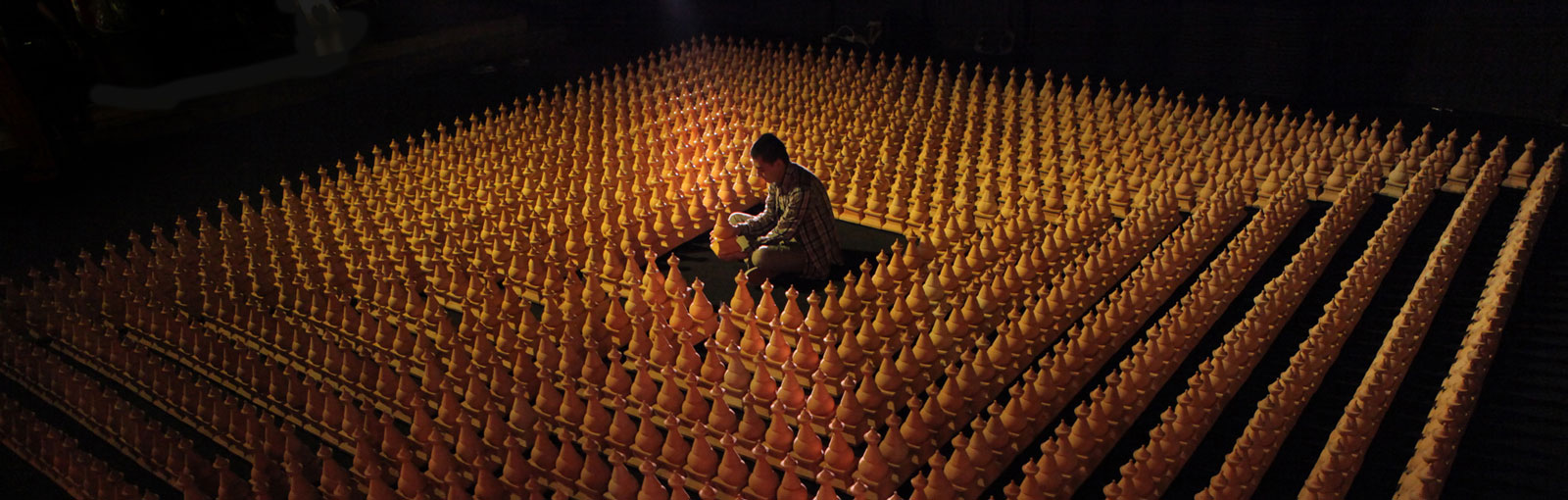 His work for “Sakti’’, Cosmic Labyrinth: The Silent Path, is made of 1,200 ceramic objects in the form of stupas. The work is also meant as a spiritual meditation in order to find enlightenment through transformative energy, the power of Sakti.